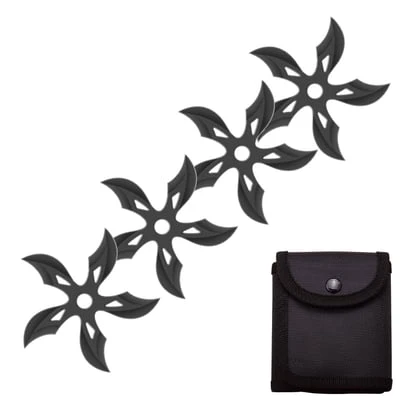 The incredible five sided curve blades black finish Anime throwing star is made from heavy, high grade stainless steel. This ninja stars are forged and sharpened to have greater mass and supreme balance. This allows the five point shiruken to stick to targets in a deadlier fashion than smaller or lighter throwing stars.