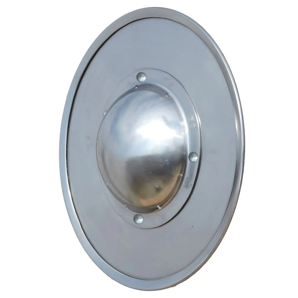 Although the existence of buckler is not very well known, it was very widely used in its day. It was a simple yet effective weapon that when combined with a sword, made a swordsman a much more dangerous opponent. There were five primary uses which recognized the bucklers small size and maneuverability: Hand protection, Deflector, Blinder, “Metal fist”, Binder. Its small size was very useful in deflecting the blow of swords or large fighting knives. Constructed of 16 gauge iron with a natural finish the Infantry Battle Ready 16g Buckler Shield would give the user a clear advantage over other opponents.