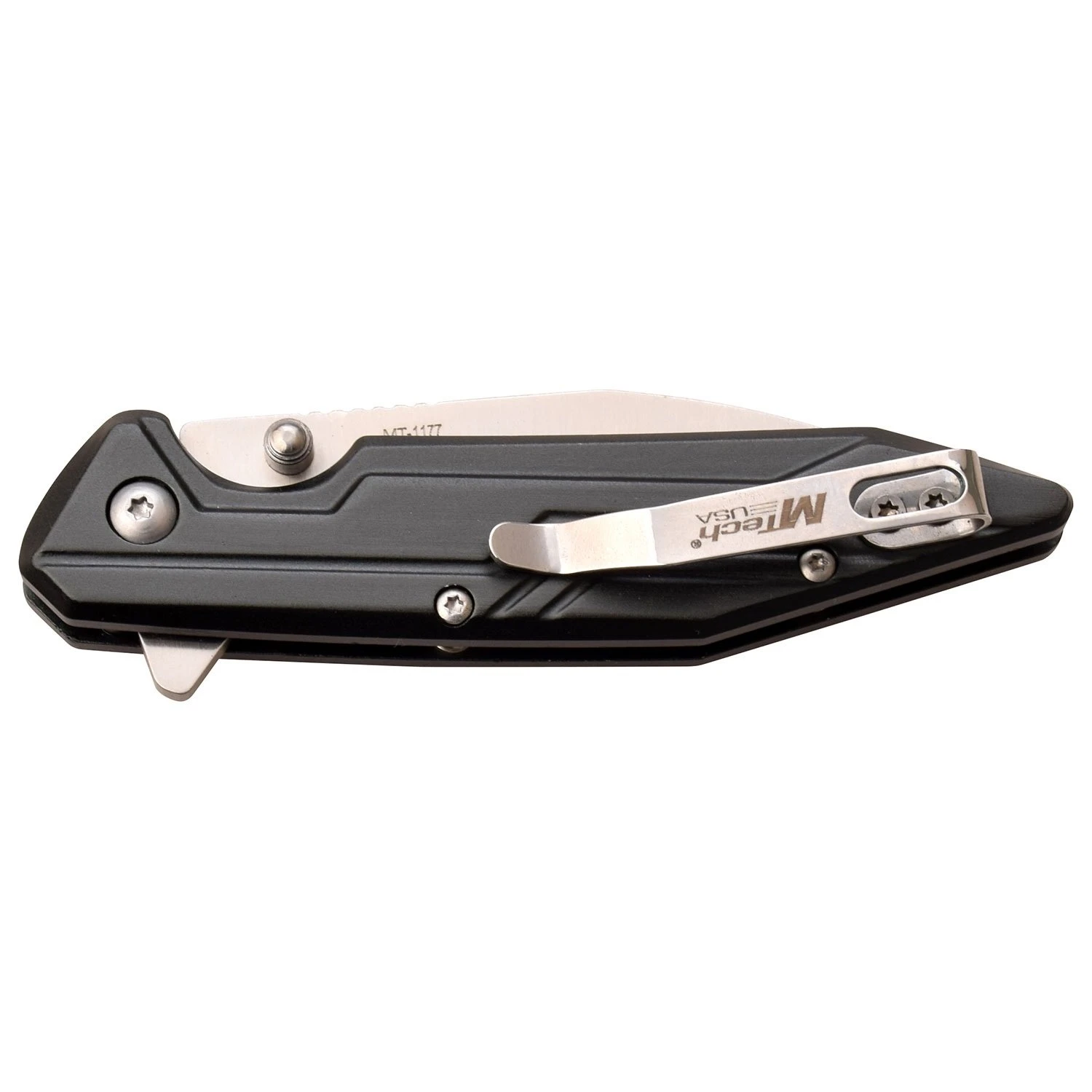Mtech manual folding pocket knife for sale at wholesale price. The knife is 7 inch overall length in open position. The pocket knife has a 3 inch 3cr13 steel blade and 4 inch anodized aluminum handle. Comes with action closing system, ball bearing pivot.